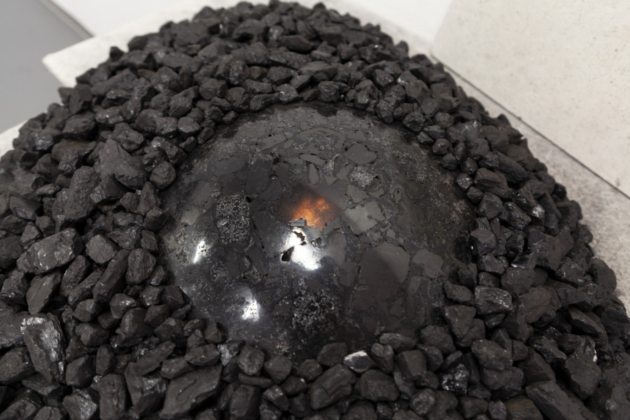 2023, plaster, hard coal, polyurethane, inkjet-print of Rubens‘ painting „Prometheus Bond“, lighting, approx. 120 × 90 × 100 cm